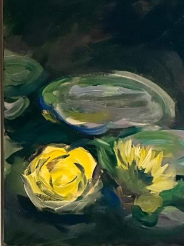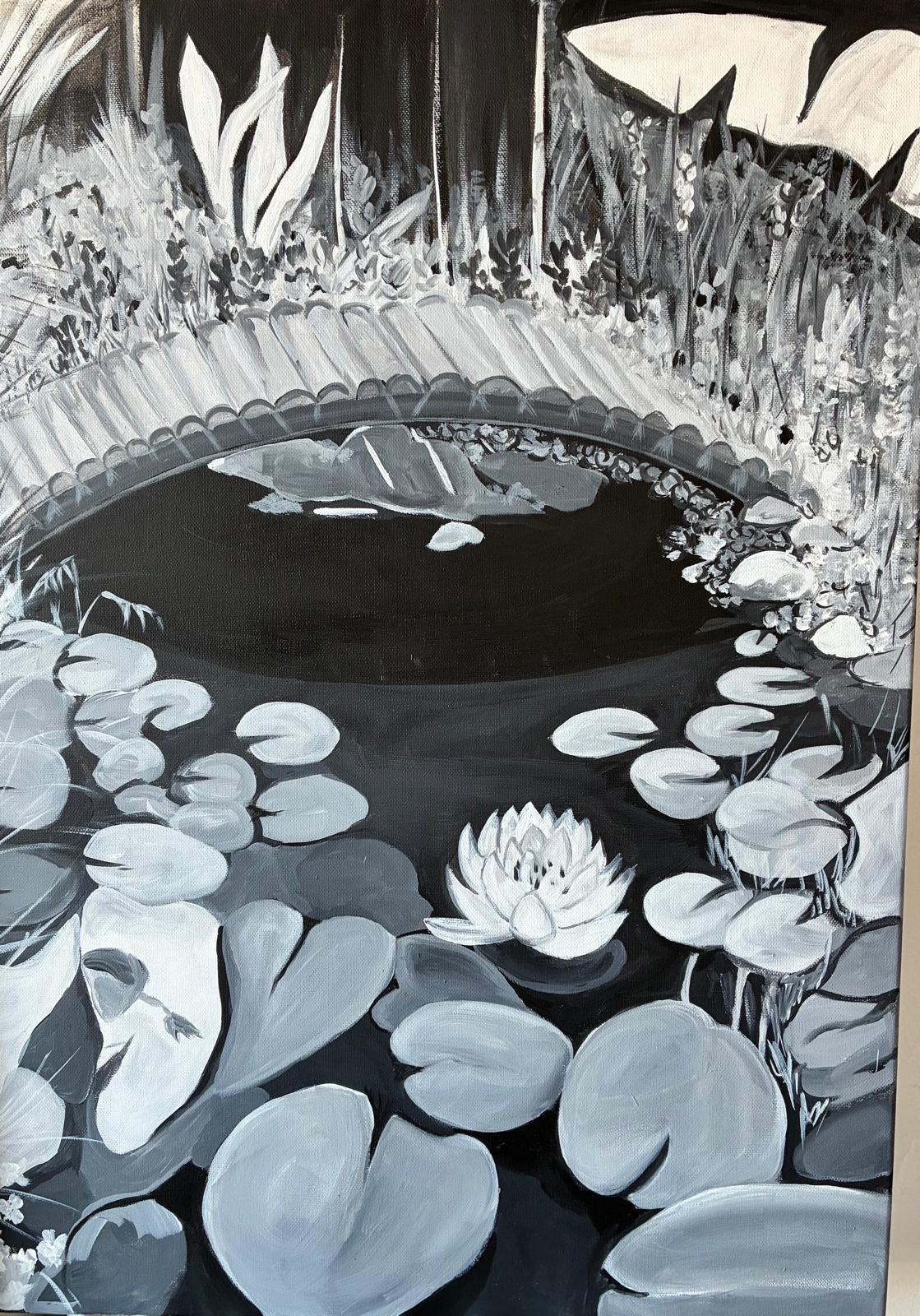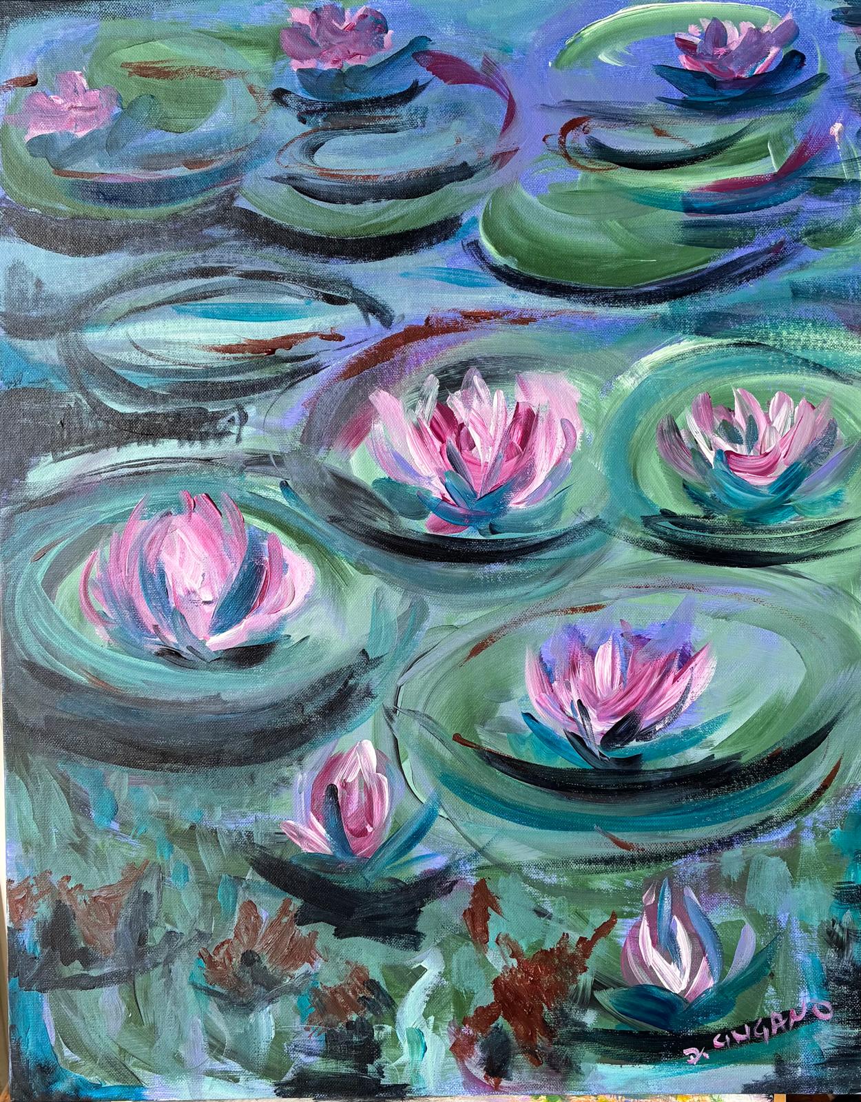 In Io studio, “Cosa succede nell’acqua?” Acrilico su tela2025
