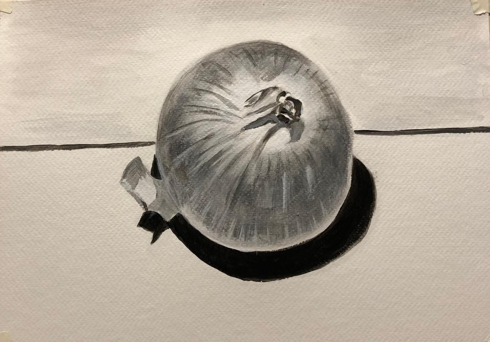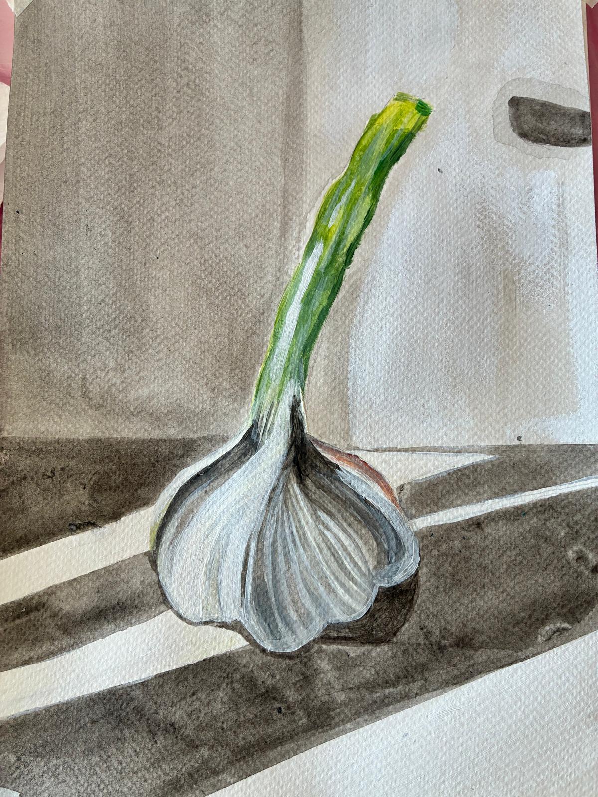 Io studio, disegno dal vero “la cipolla” acrilico su carta, 2024