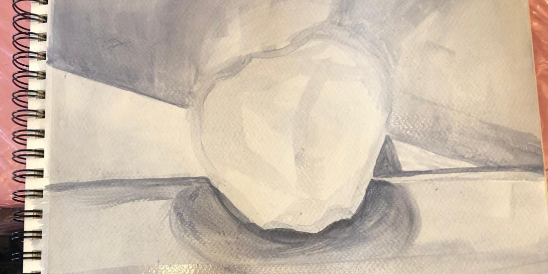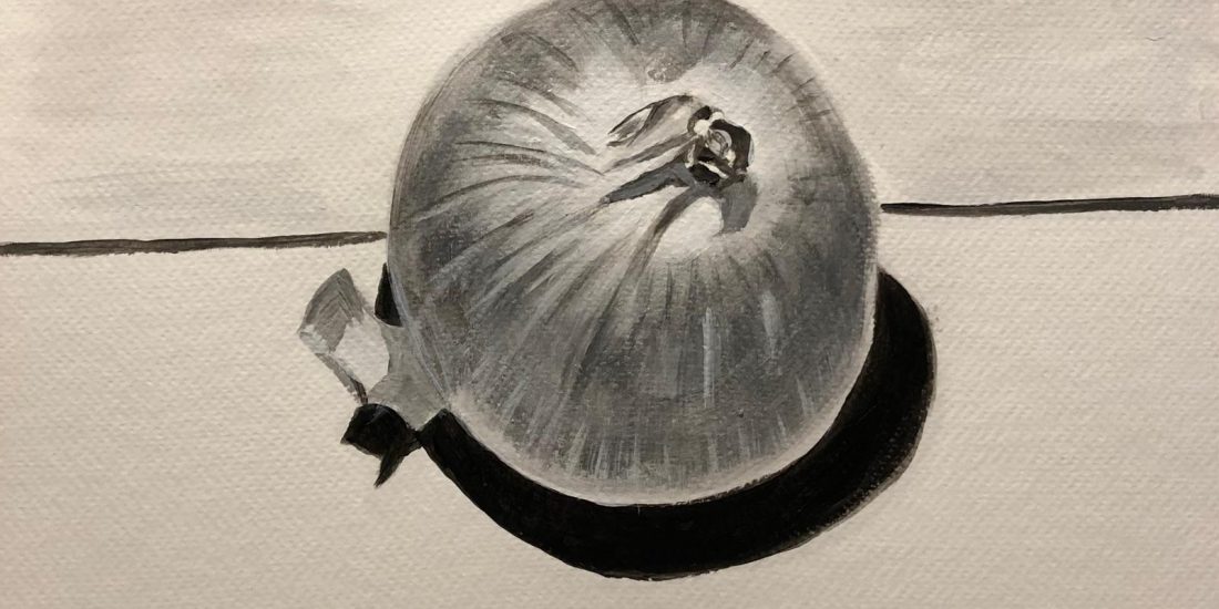 Io studio, disegno dal vero “la cipolla” acrilico su carta, 2024