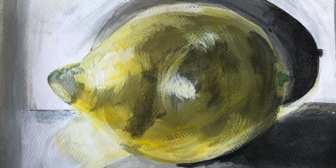 Io studio, “Il limone”, acrilico su carta, 2024