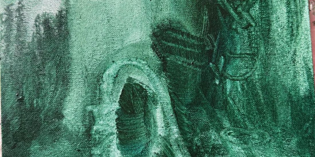 In Io studio, “Cosa succede nell’acqua?” Acrilico su tela2025